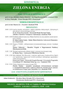 Polskie Towarzystwo Ekonomiczne Oddział Katowice zaprasza na konferencję pn. “Zielona Energia”, która odbędzie się w dniu 23.05.2024 r. w godzinach od 10:00 do 13:00 w Akademii Wyższej Szkoły Bankowej przy ul. Cieplaka 1C w Dąbrowie Górniczej.